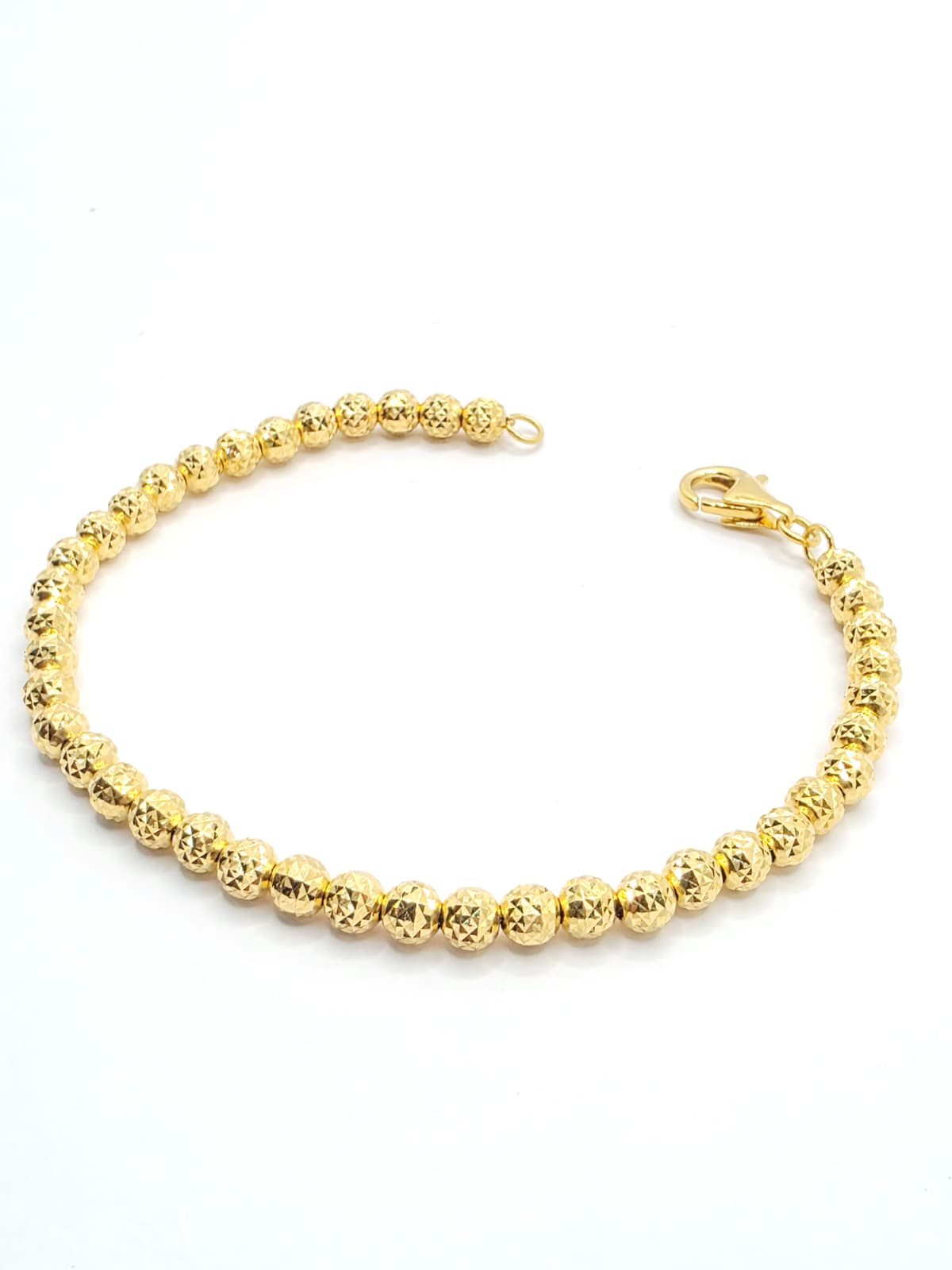 Elevate your style with this 916 Gold Diamond Cut Ball Bracelet. Crafted from high-quality 916 gold, its diamond-cut finish adds a subtle sparkle that catches the light beautifully. The lightweight design ensures comfortable wear throughout the day, making it perfect for both everyday elegance and special occasions. This bracelet combines classic craftsmanship with timeless charm, supporting your look with a touch of refined sophistication.