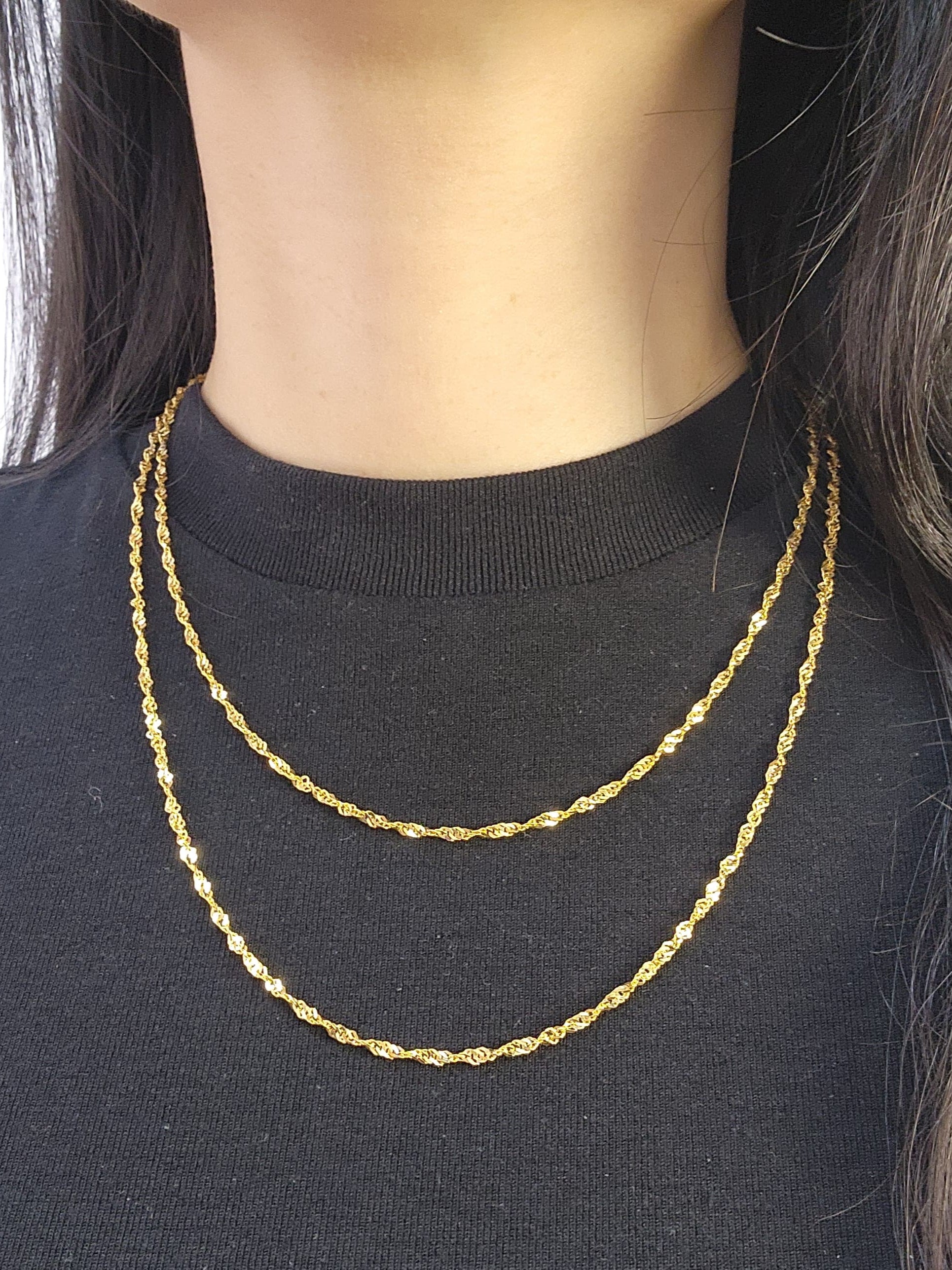 Introducing the 916 Gold Disco Chain series, available in 2-4gm weight. This sleek and stylish chain shines bright, perfect for wearing alone or with your favorite pendant. Elevate your fashion game with this must-have accessory.