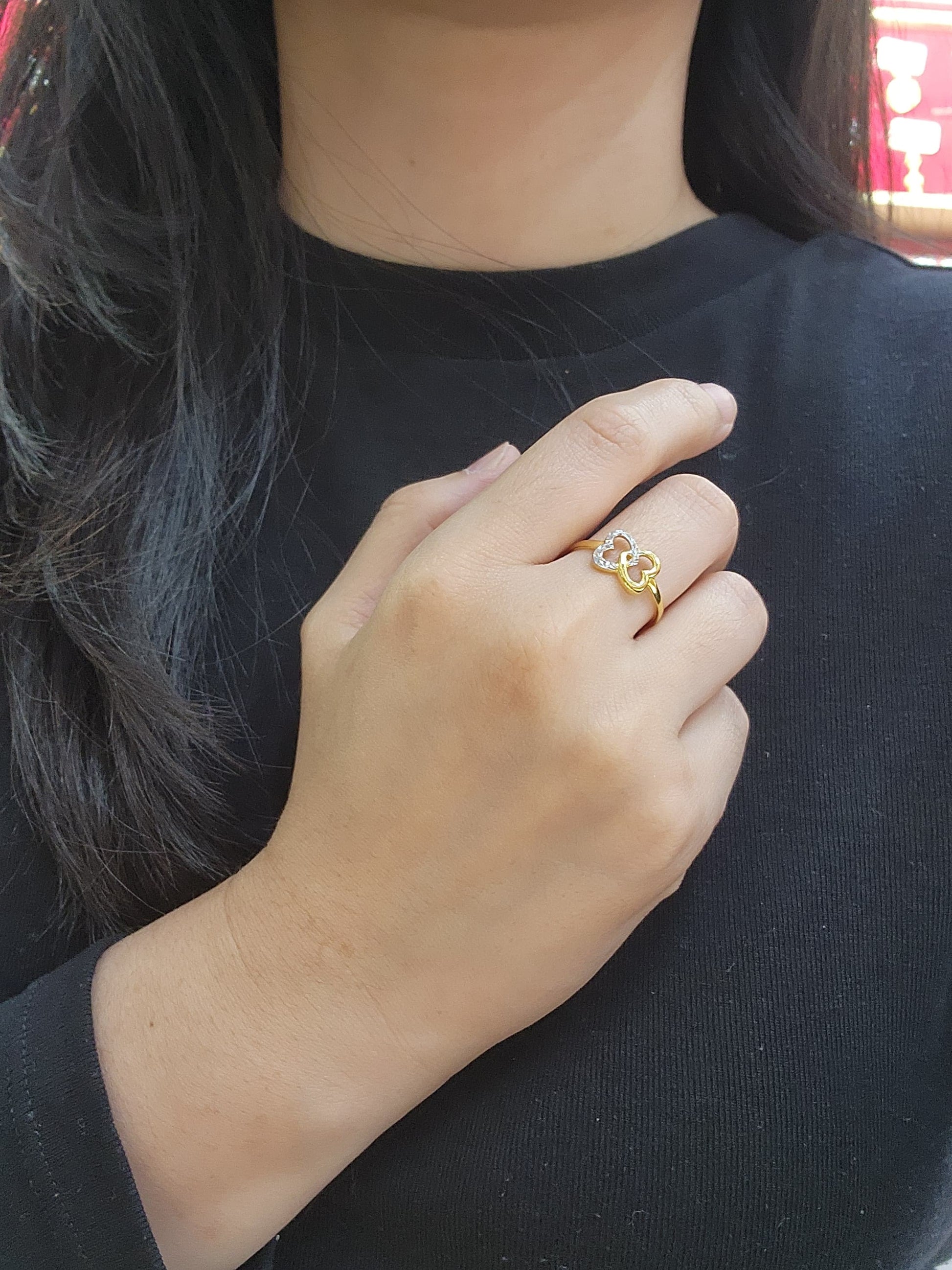 This elegant 916 gold double heart ring is perfect for any special occasion. Its beautiful design symbolizes love and commitment, making it a thoughtful gift for a loved one.