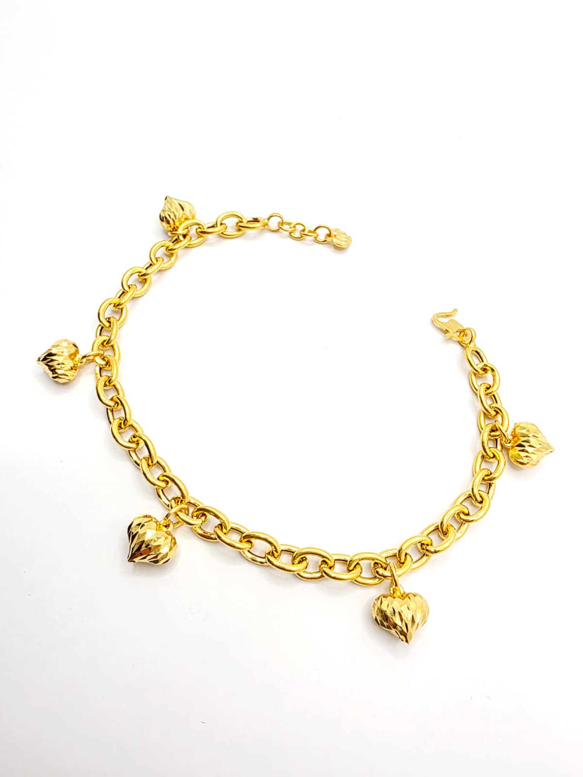 This 916 Gold Heart Circle Chain Bracelet combines timeless elegance with heartfelt design. Crafted from premium 916 gold, it offers lasting shine and durability. The delicate heart and circle motifs symbolize love and unity, making it a meaningful accessory for daily wear or special occasions. Its comfortable chain ensures effortless style and a perfect fit, supporting you in expressing your unique story.