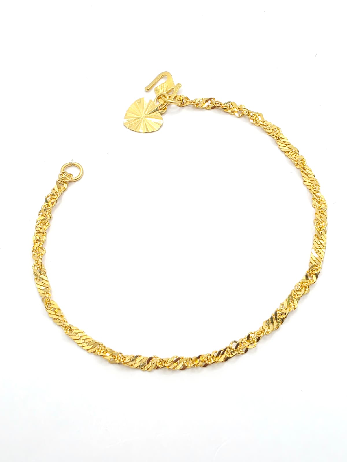 Experience timeless elegance with the 916 Gold Ripple Bracelet. Crafted from high-quality 916 gold, this bracelet features a unique ripple design that catches the light beautifully, adding subtle sophistication to any outfit. Its durable construction ensures long-lasting wear, making it a thoughtful and cherished addition to your collection or a meaningful gift for someone special. Embrace both style and strength in one graceful accessory.