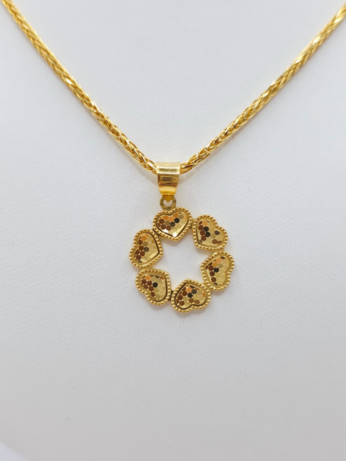 Embrace elegance with the 916 Gold Shining 6Hearts Pendant, crafted from high-quality 916 gold for lasting beauty and durability. Its delicate heart designs symbolize love and connection, making it a meaningful gift or a cherished addition to your jewelry collection. Wear it daily to add a subtle shine and a touch of warmth to any outfit. This pendant offers both timeless style and a supportive reminder of the bonds that matter most.
