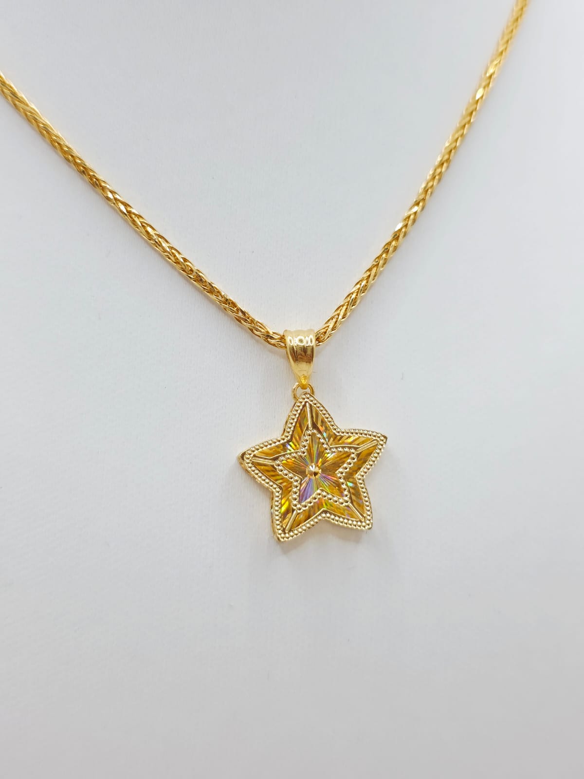 Crafted from authentic 916 gold, this Sparkling Star Pendant adds a touch of elegance to any outfit. Its delicate design captures the light beautifully, making it a perfect accessory for both everyday wear and special occasions. A meaningful piece that brightens your style with lasting shine and subtle sophistication.