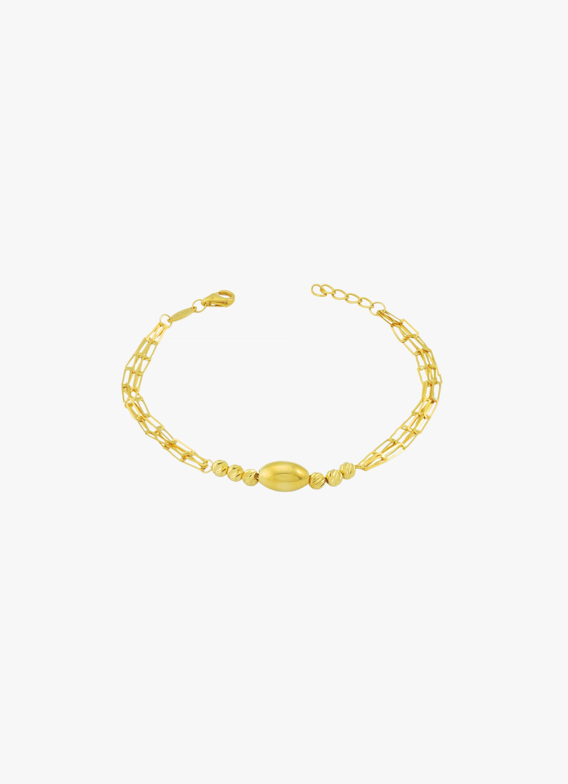Elevate your style with our 916 Gold Beads Layer Paperclip Bracelet. Made with high-quality 916 gold beads, this bracelet is perfect for adding a touch of elegance to any outfit. Its layered design adds texture and dimension, making it a versatile accessory for any occasion. Upgrade your jewelry collection with this must-have piece.