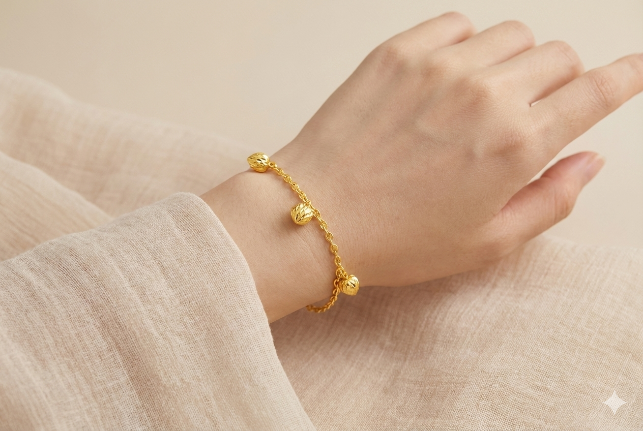 Made of high-quality 916 gold, this miniature love dangling bracelet is a beautiful and timeless symbol of affection and commitment. Boasting 91.6% gold purity, its intricate design and delicate dangling detail showcase expert craftsmanship. Elevate any outfit with this stunning piece and make a lasting impression.