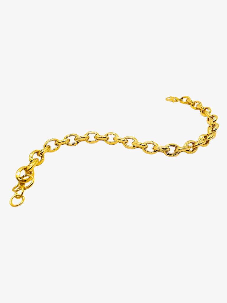 This 916 Gold Anchor Chain Bracelet is both stylish and durable. Crafted from high-quality 916 gold, this bracelet features a sleek and eye-catching anchor chain design. Perfect for any occasion, this bracelet will add a touch of elegance to any outfit. Made to last, this bracelet is an investment piece that will elevate your jewelry collection.
