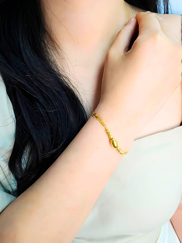 Elevate your style with our 916 Gold Beads Layer Paperclip Bracelet. Made with high-quality 916 gold beads, this bracelet is perfect for adding a touch of elegance to any outfit. Its layered design adds texture and dimension, making it a versatile accessory for any occasion. Upgrade your jewelry collection with this must-have piece.