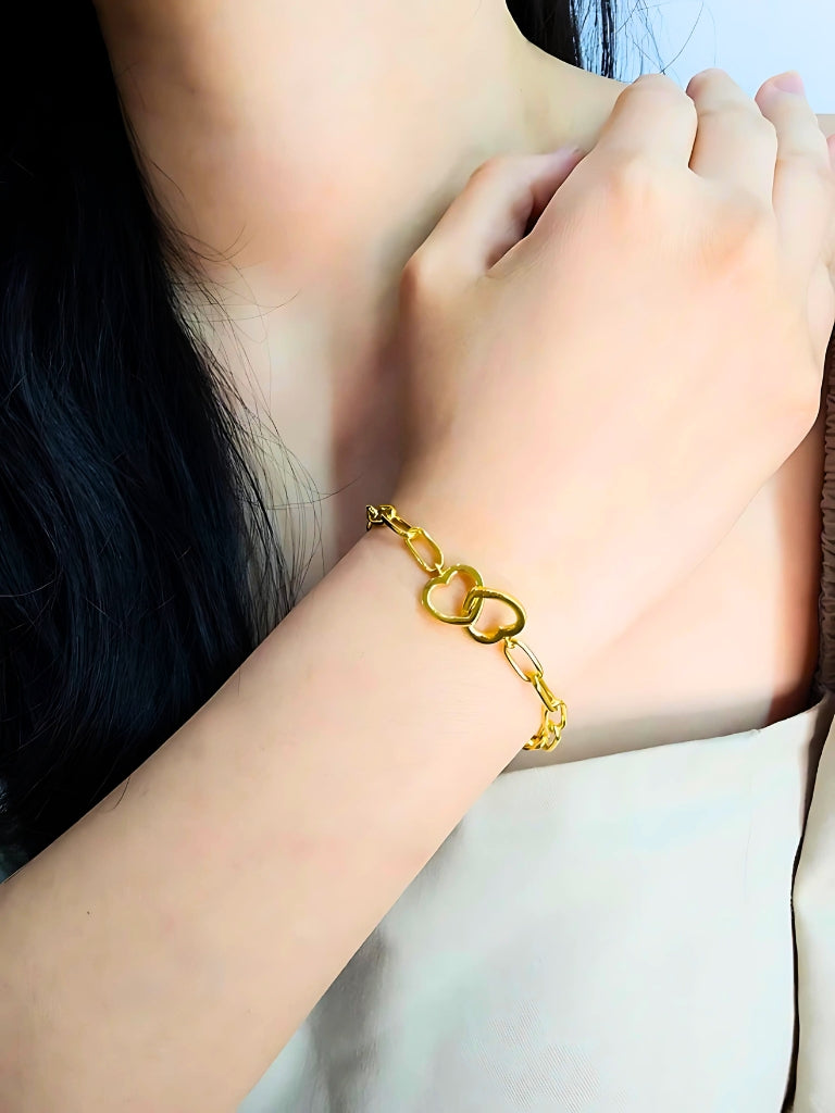 Embrace the beauty of love with our 916 Gold Double Love Link Bracelet. Made from high quality 916 gold, this bracelet features a unique double link design that symbolizes an unbreakable bond. Add a touch of elegance and love to your wardrobe with this stunning piece.