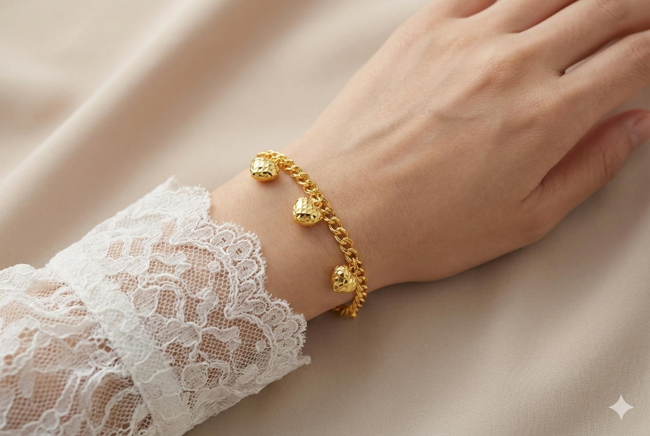 The 916 Gold Heart Coco Bracelet combines timeless elegance with meaningful design. Crafted from high-quality 916 gold, its heart-shaped charm adds a delicate touch that symbolizes love and connection. Perfect for everyday wear or special occasions, this bracelet offers both durability and a warm, radiant shine that complements any outfit. Embrace a piece that supports your style and carries a heartfelt message.