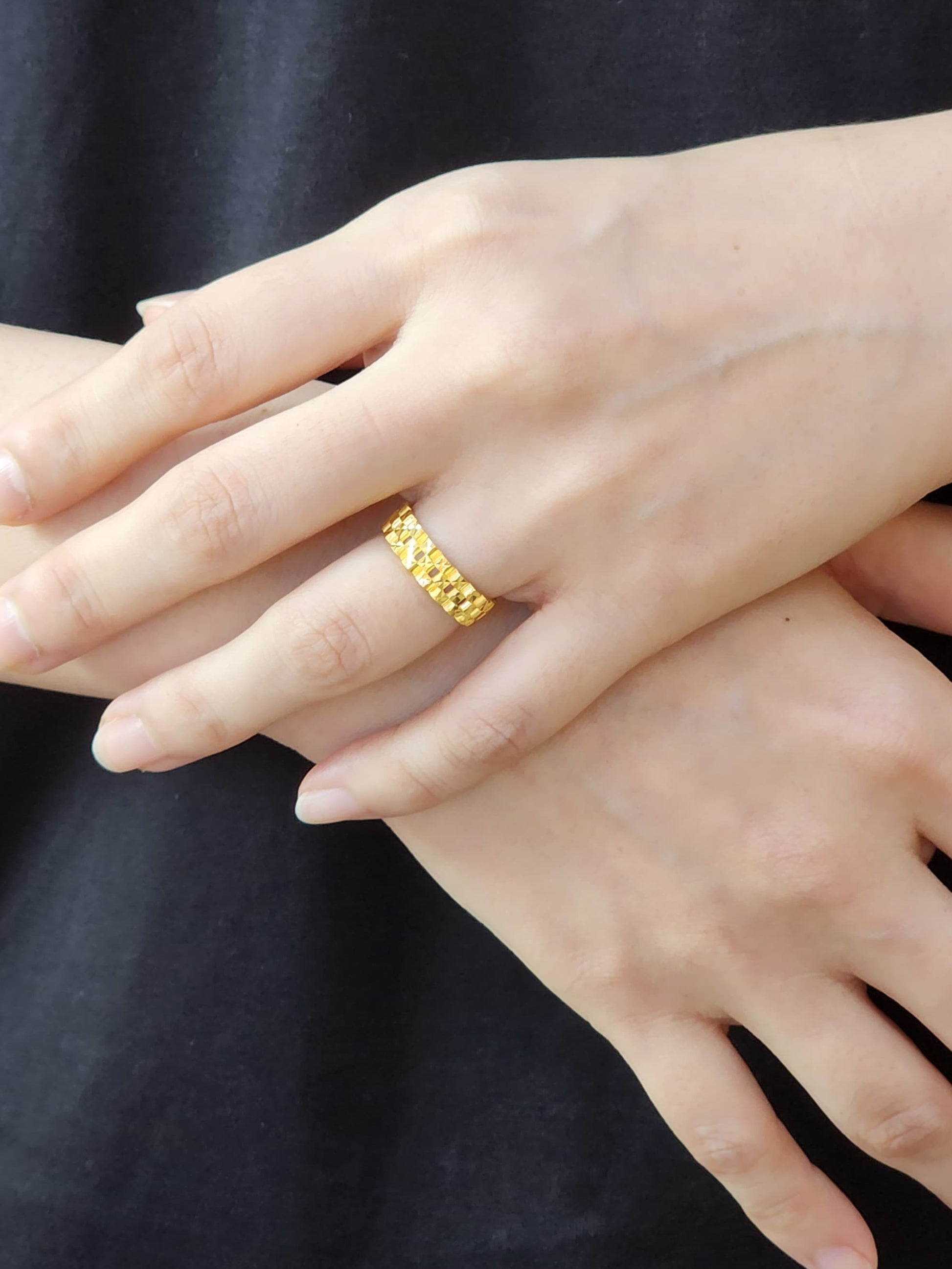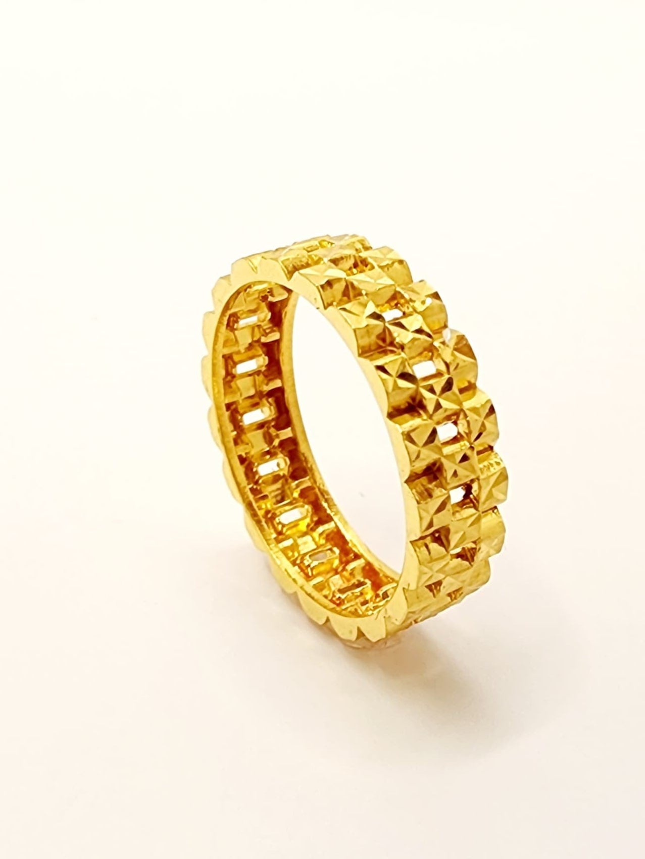 Indulge in luxury with our 916 Gold Jubilee Ring. Made with high-quality 916 gold, this ring exudes elegance and sophistication. Its timeless design will add a touch of glamour to any outfit, making it the perfect accessory for any occasion. Treat yourself or someone special to this exquisite piece of jewelry.