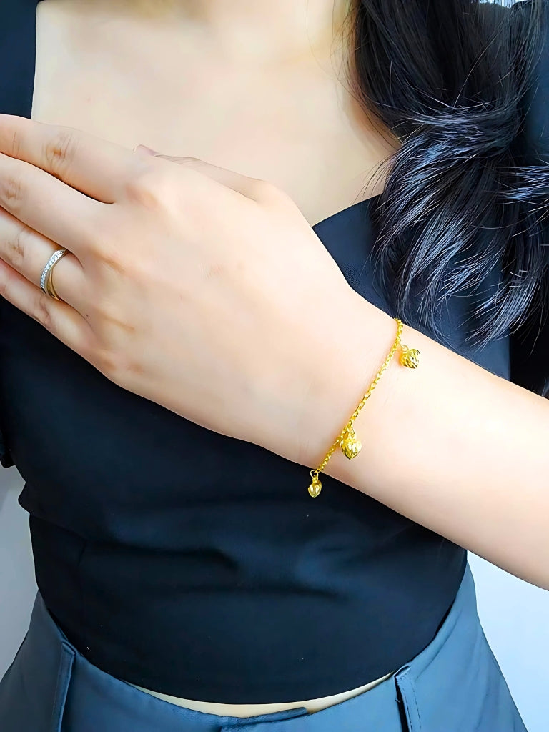 Made of high-quality 916 gold, this miniature love dangling bracelet is a beautiful and timeless symbol of affection and commitment. Boasting 91.6% gold purity, its intricate design and delicate dangling detail showcase expert craftsmanship. Elevate any outfit with this stunning piece and make a lasting impression.