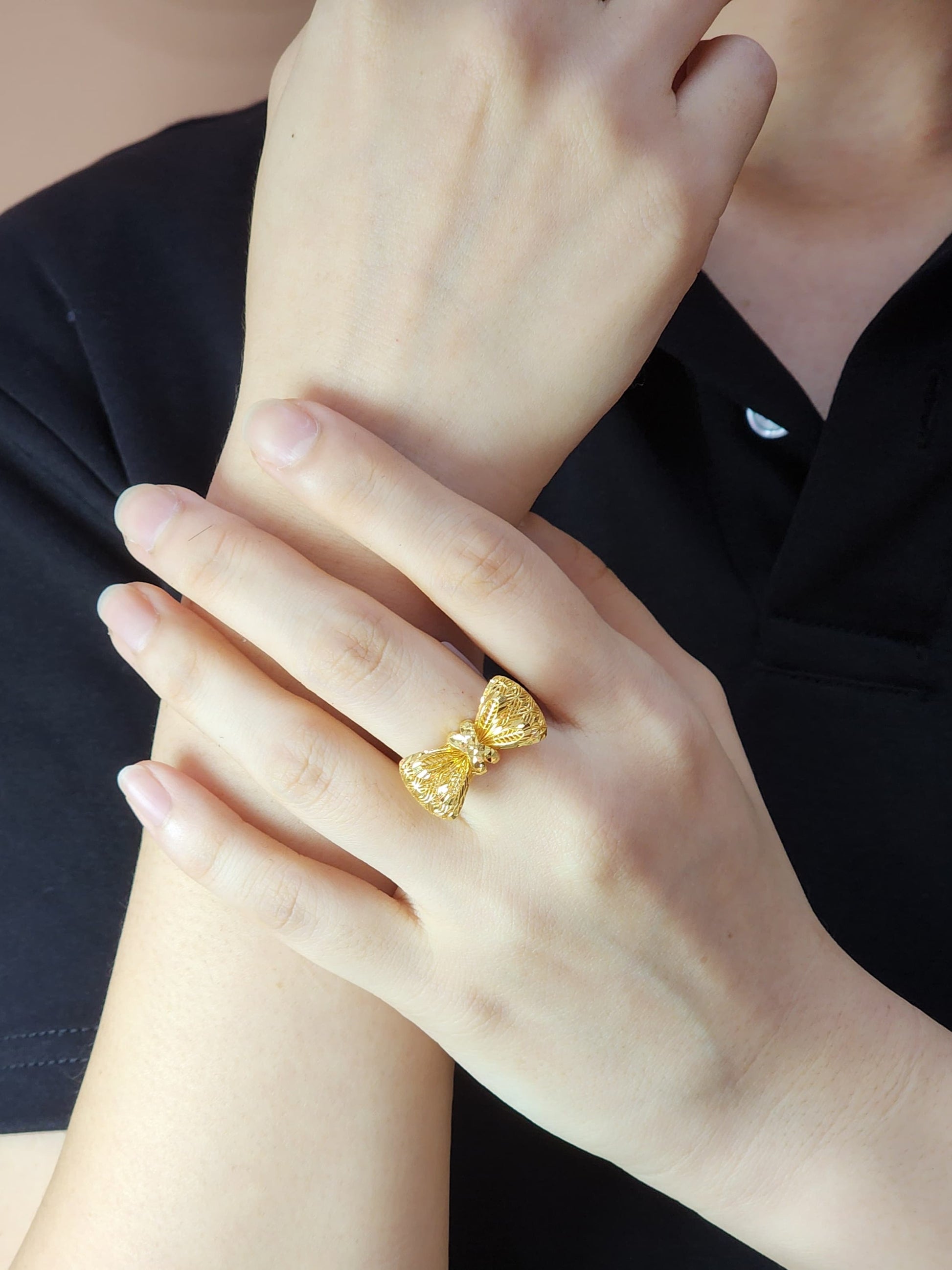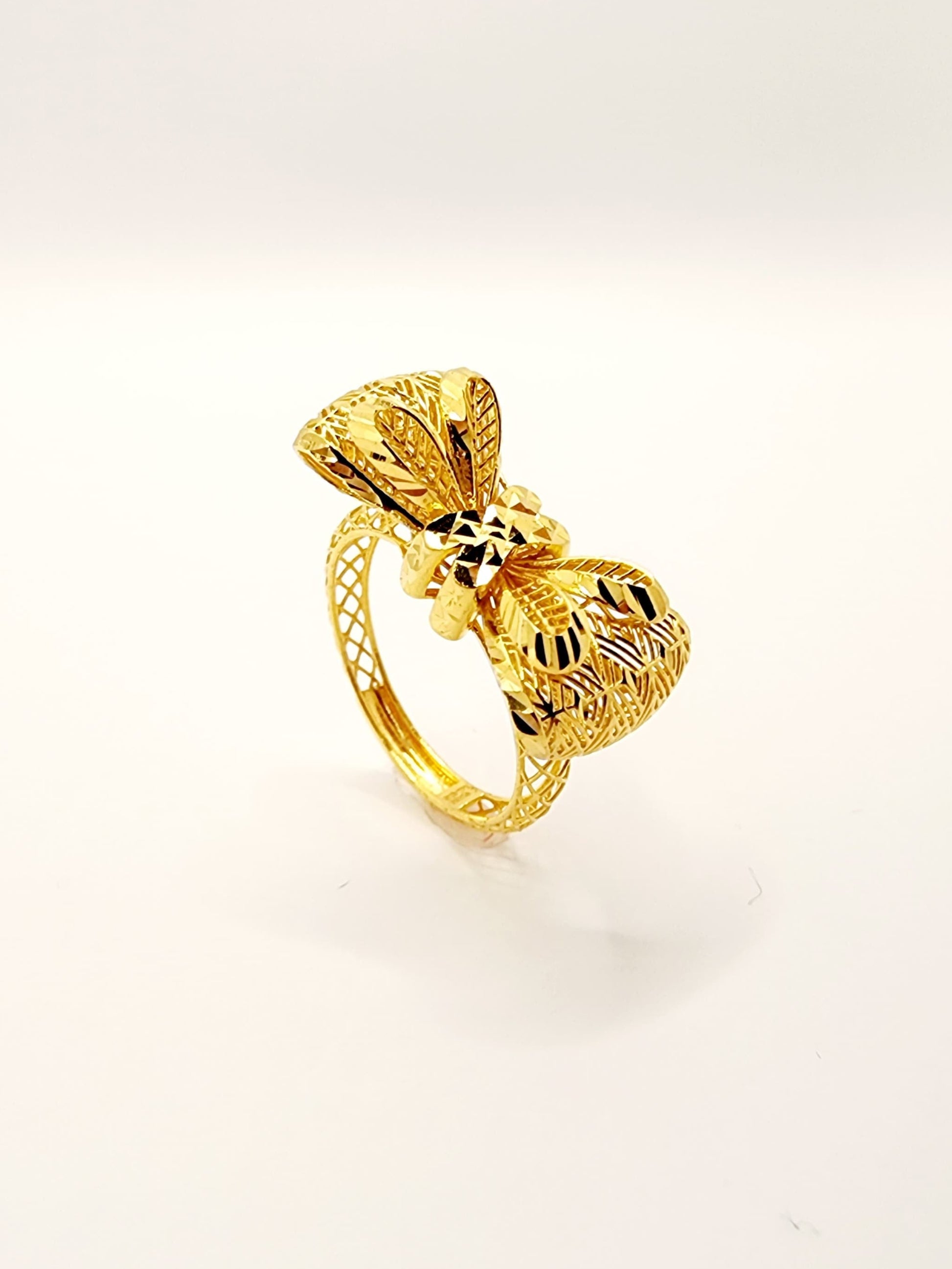 Indulge in luxurious elegance with our 916 Gold Ribbon Ring. Made from the highest quality gold, this ring features a delicate ribbon design that is both classic and modern. Perfect for any occasion, this ring will add a touch of sophistication to any outfit. Treat yourself or a loved one today.