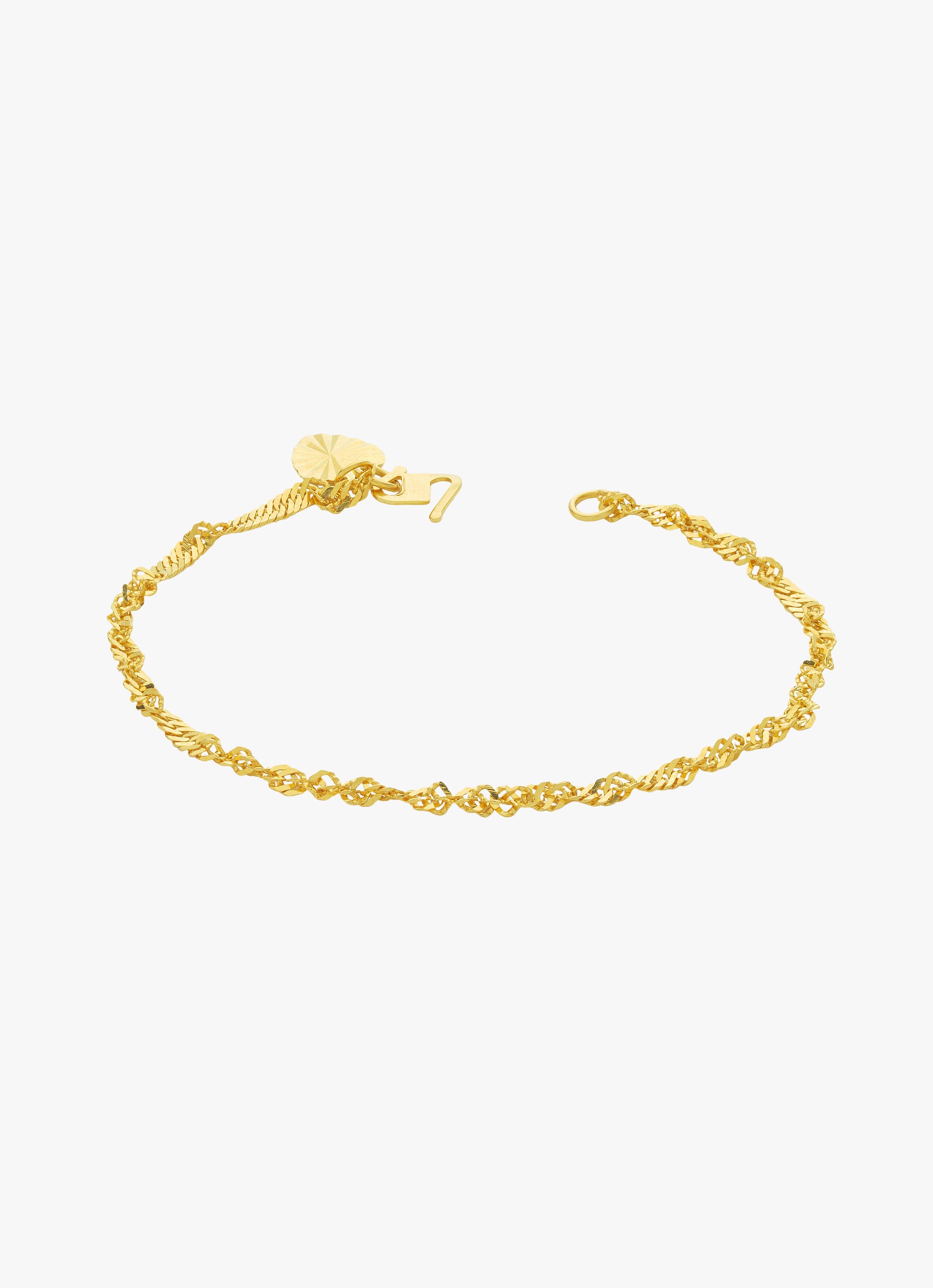 Experience timeless elegance with the 916 Gold Ripple Bracelet. Crafted from high-quality 916 gold, this bracelet features a unique ripple design that catches the light beautifully, adding subtle sophistication to any outfit. Its durable construction ensures long-lasting wear, making it a thoughtful and cherished addition to your collection or a meaningful gift for someone special. Embrace both style and strength in one graceful accessory.