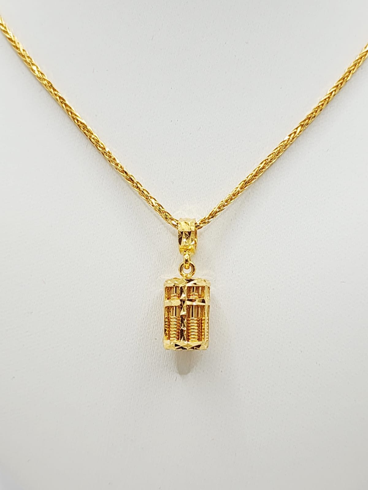 Crafted from 916 gold, this Tube Abacus pendant combines timeless elegance with symbolic meaning. The slender tube design highlights the classic abacus, a symbol of wisdom and success. Wearing this pendant offers a subtle reminder to balance and focus, making it a meaningful addition to your daily style. Its durable gold ensures lasting shine and comfort.